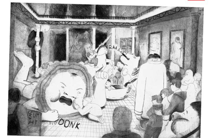 In spring 2026, ARTEFICTION presents a wide selection of these works in the Mercator Aisle of the Art & History Museum. Expect a collection of images as rich as the museum’s own holdings: from sketch to poster, from sharp observational study to colourful fantasy world, from pencil to paint, from etching to screen print…
