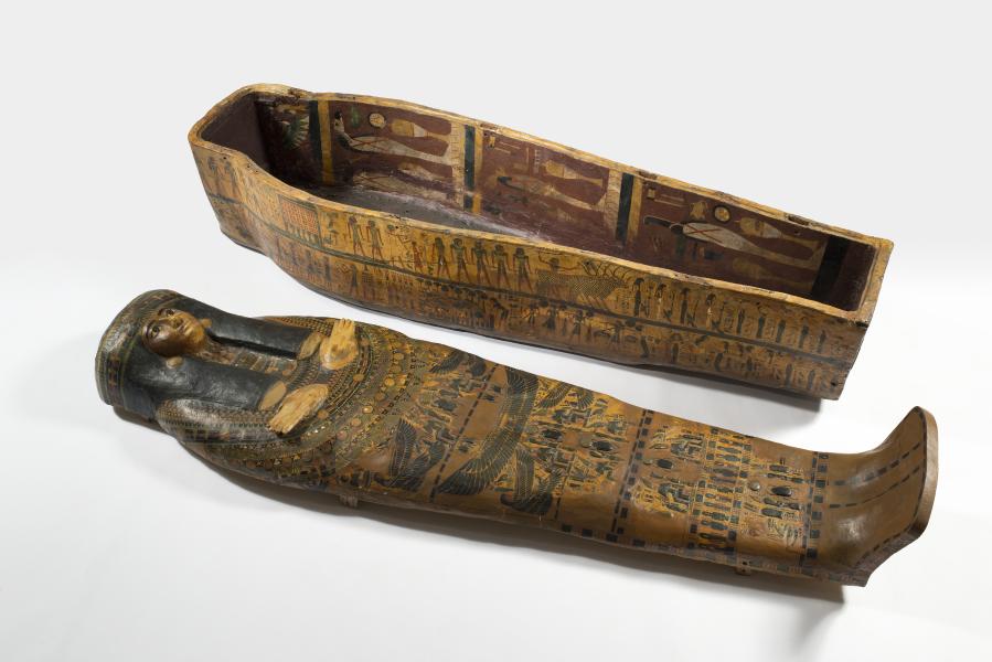 - Grafkisten van Bab el-Gasous: Dit project omvat de studie van de grafkisten uit de 21ste dynastie (ca. 1076-1044 voor Chr.), mummieplanken en andere funeraire objecten afkomstig uit de ‘tweede cachette van Deir el-Bahari, nabij Luxor. Deze cachette is gekend als Bab el-Gasoes (‘de deur van de priesters’) en het is de laatste rustplaats van 153 leden van de clerus van Amon te Thebe. Niet lang na de ontdekking van dit graf werden meerdere objecten afkomstig van deze uitzonderlijke vondst aan de KMKG geschonken door de Egyptische autoriteiten. De mummiekisten en de mummieplanken werden onlangs gerestaureerd door het Istituto Europeo del Restauro (Ischia, Italië), wat het mogelijk maakte oude restauraties en overschilderingen te herkennen die deels de oorspronkelijke versiering bedekten. Dit grafmeubilair vertoont een uitzonderlijke iconografie en biedt een nieuwe kijk op het religieuze geloof en de begravingsgebruiken voor de priesters van Amon.